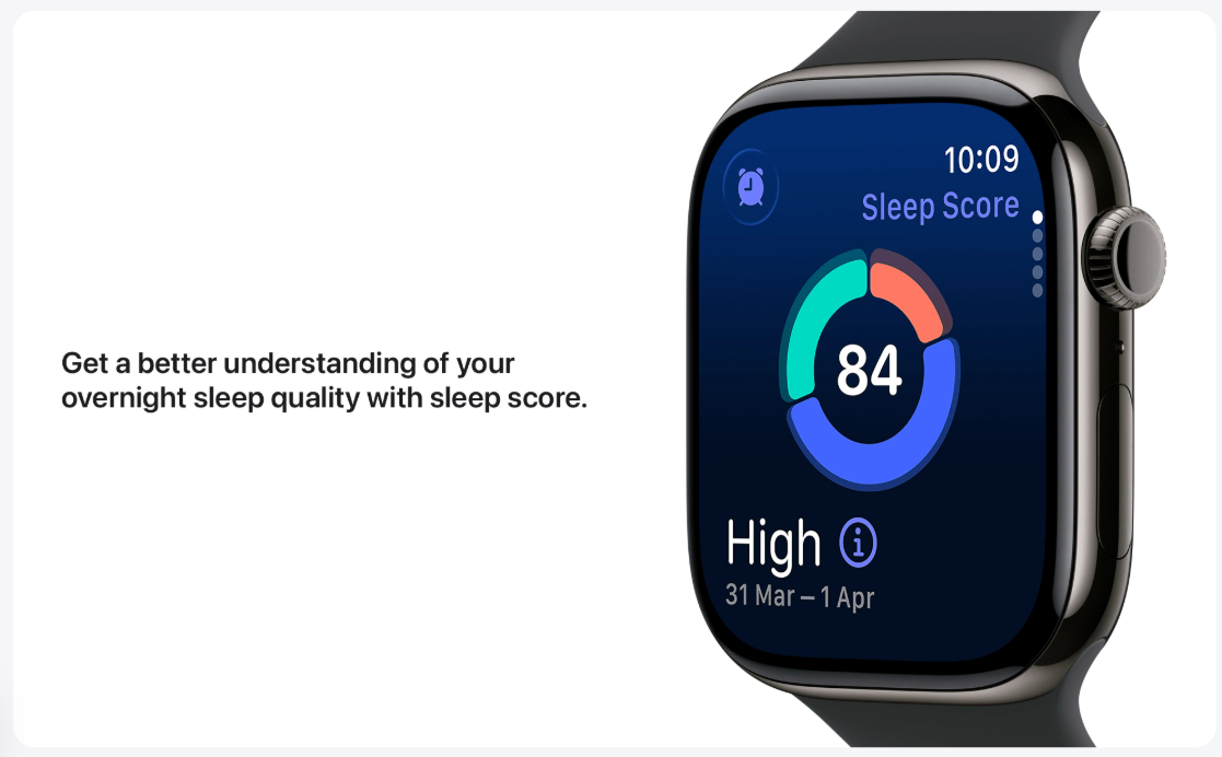 Sleep Apnoea Notifications: Sleep apnoea notifications are available on Apple Watch Series 9 and later, Ultra 2 and later and SE 3. The feature is intended to detect signs of moderate to severe sleep apnoea for people aged 18 years or older without a diagnosis of sleep apnoea. Always follow directions for use. The feature is not intended for use in screening for, diagnosing, treating or managing sleep apnoea. Even without a notification, sleep apnoea may still be present. Consult a medical practitioner if you have symptoms of sleep apnoea, or any other breathing disturbance.