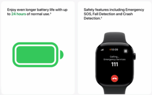 International Emergency Calling: Requires an Apple Watch Series 5 (GPS + Cellular), Apple Watch SE (GPS + Cellular), Apple Watch Ultra or later. For a list of supported countries and regions, see apple.com/nz/watchos/feature-availability.