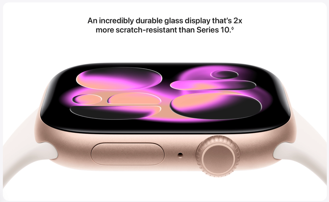 Water and Dust Resistance: Apple Watch Series 2, Series 3, Series 4, Series 5, Series 6, Series 7, Series 8, Series 9, Series 10 and Series 11, and Apple Watch SE, SE 2 and SE 3 have a water resistance rating of 50 metres under ISO standard 22810:2010. This means that they may be used for shallow-water activities like swimming in a pool or ocean. Series 10 and later can also be used for snorkelling to 6 metres. However, they should not be used for scuba diving, waterskiing or other activities involving high-velocity water. Apple Watch Ultra, ultra 2 and Ultra 3 have a water resistance rating of 100 metres under ISO standard 22810:2010. They may be used for recreational scuba diving (with compatible third-party app from the App Store) to 40 metres, and high-speed water sports. They should not be used for diving below 40 metres. Water resistance is not a permanent condition and can diminish over time. For additional information, see support.apple.com/109522. Apple Watch Series 8, Series 9, Series 10 and Series 11, and Apple Watch Ultra, ultra 2 and Ultra 3 are rated IP6X dust resistant.