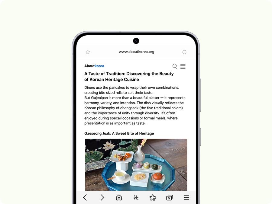 Browsing Assist helps you digest long articles faster, summarising key info and translating web pages right in Samsung Internet. Save time, understand more and get straight to what matters most every time you’re on the web.