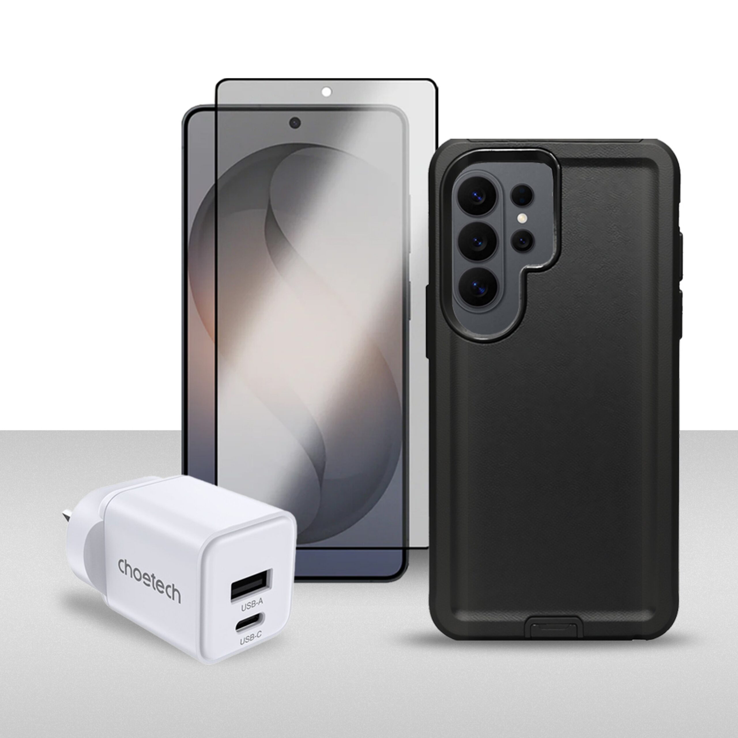 Samsung Galaxy S26 Ultra s256GB Bundle comes with: Screen protector, Black Case and a Choetech Wall Charger: